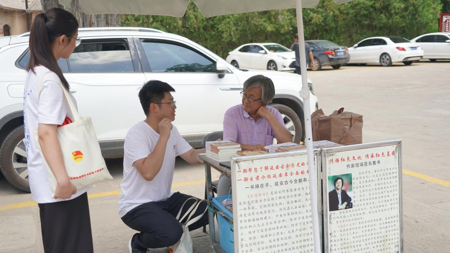 此外,实践团在中共中央军委礼堂外采访了《走进延安》的作者花海洋。实践团向花海洋请教了他对延安精神的理解,他表示,延安精神是民族精神的升华,是我们党宝贵的精神财富。他希望我们大学生能够将延安精神落到实处,培养实事求是、理论联系实际的精神。