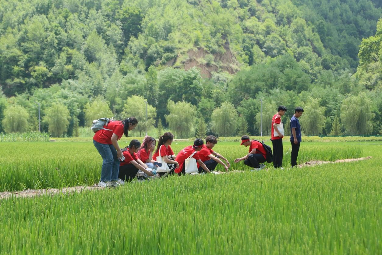 上午,实践团成员抵达南泥湾后,途中经过了南泥湾湿地公园。在经过时,实践团成员不仅被眼前的美景所惊艳,更对湿地公园在生态保护和绿色发展方面所做的努力感到由衷赞叹。随后实践团成员走进了南阳府村,与当地的村民们进行了亲切的交谈。村民们热情地分享了他们近年来的生活变化和家乡发展的点点滴滴,每一个话题都透露出乡村发展的蓬勃活力和乡亲们对未来美好生活的向往。在详细了解村民的生产生活状况、收入来源以及医疗卫生等方面的情况的同时,调研了村庄发展历程以及面临的挑战与机遇。随后,实践团成员分组行动,深入田间地头,亲身体验传统农林耕作,拿起锄头帮助村民除草,采摘水果。亲身体会到了农民们劳动的辛勤,更直观地了解中国农村的发展现状和乡村振兴的重要性。