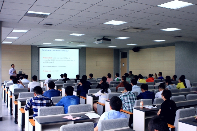 论文是科研成果的高度凝练,是衡量学术水平的重要标准,“不发表即淘汰”已然成为科研界的基本规则。随着中国科研事业不断与国际接轨,高水平科研论文已经成为评价学术成果的重要指标。基于该背景,澳大利亚莫纳什大学Ranjith Pathegama Gamage教授,西南石油大学刘建军教授及yL23411永利官网登录王建国教授,均围绕如何撰写高水平研究论文,分别做了题为《How to write the literature review》、《科技论文写作与投稿》和《SCI 论文的写作经验与体会》的学术报告。Ranjith教授结合自己十余年指导博士生撰写文献综述的经验,主要给大家阐述了何时开始写文献综述、为什么要写文献综述、如何写文献综述以及撰写综述时需要注意的细节等;刘建军教授结合他自己多年来作为学报主编的经历,主要从为什么要写论文、如何做科学研究、学术论文怎么写、论文的投稿流程、学术不端的预防5个方面进行了详细介绍;王建国教授从为什么要写SCI论文、什么是SCI论文、如何写SCI论文、SCI论文投稿程序及对策、如何准备初稿等方面,分享了SCI论文写作经验与体会,他强调SCI论文的灵魂是创新,是新知识的记载和传播;SCI论文写作就是进行组织实验事实、科学假定和理论之间的逻辑关系,充分展现背后的新原理,新知识或新技术。