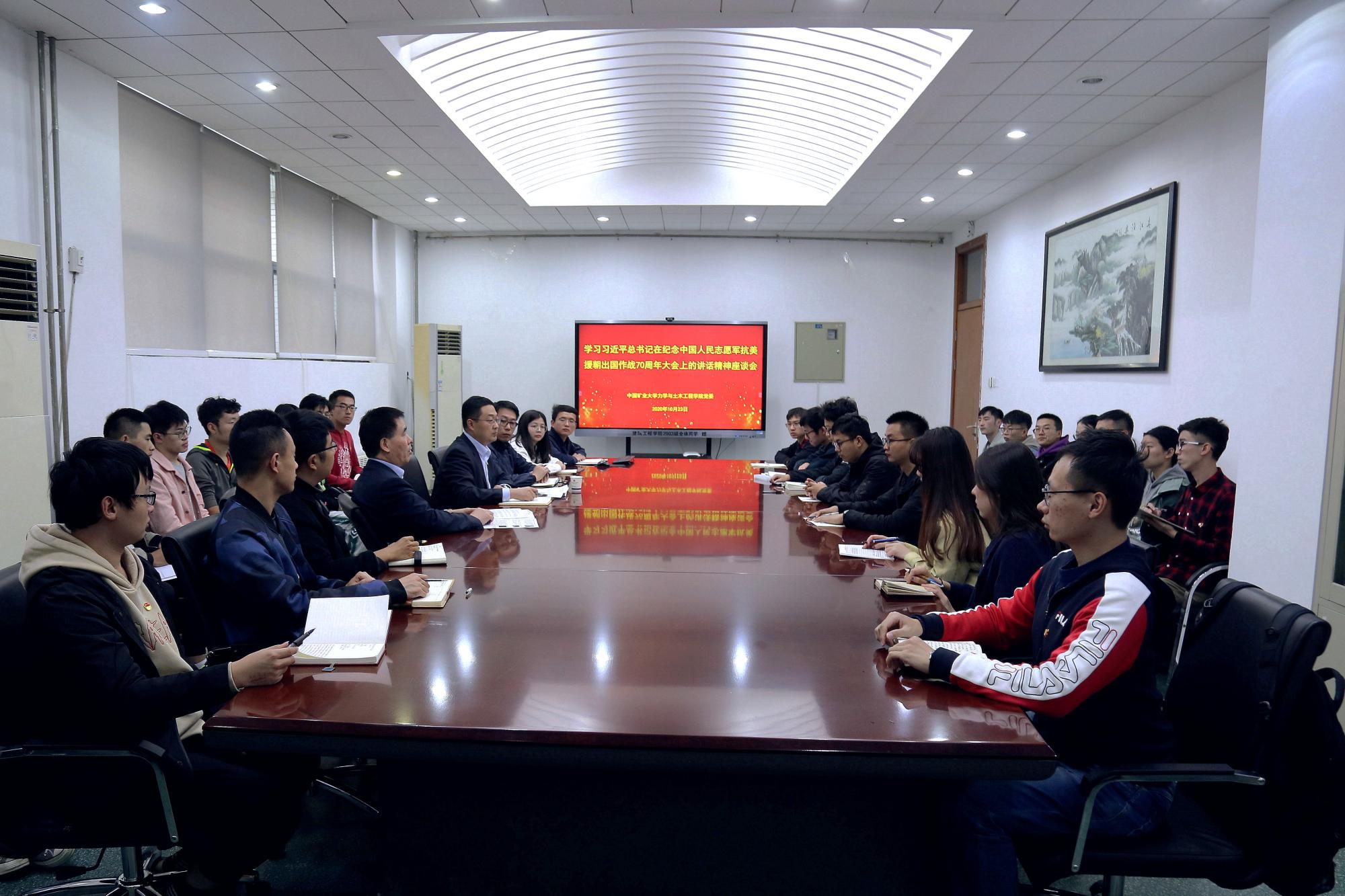 座谈会上,学工办主任游洋带领参会师生认真学习了习近平总书记在大会上的讲话原文。参会师生们还一起重温了《中国人民志愿军战歌》、《我的祖国》、《英雄赞歌》等经典革命歌曲,共同观看了反映抗美援朝战争波澜壮阔的艰辛历程和伟大胜利的影像视频记录短片。